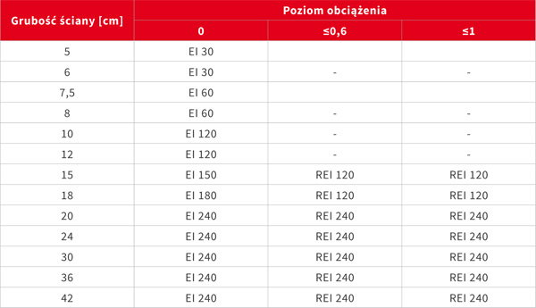 ↑ Klasyfikacja odporności ogniowej ścian z betonu komórkowego Termobet® według normy PN-EN 1996-1-2:2010