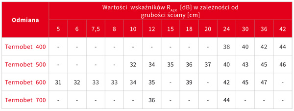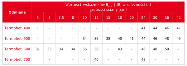 Izolacyjność akustyczna to zdolność do tłumienia dźwięków powietrznych. Przegrody ścienne wykonane z bloczków Termobet® spełniają szereg normowych wymagań dotyczących ochrony przed przenikaniem dźwięku.